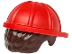 Minifigure, Hair Combo, Hat with Hair, Construction Helmet with Molded Dark Brown Short Curly Hair Pattern
