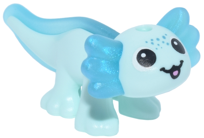 Salamander, Friends Style, Axolotl with Molded Satin Trans-Light Blue Fin and Gills and Printed Black Eyes and Mouth, Dark Turquoise Spots, Bright Pink Tongue Pattern