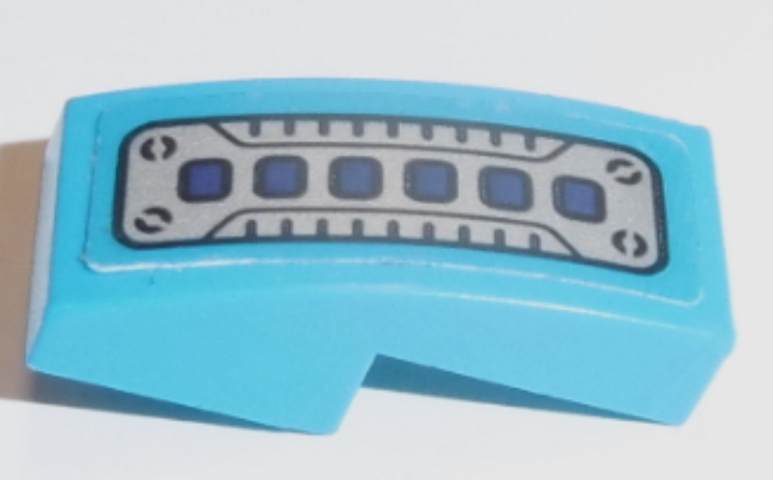 Slope, Curved 2 x 1 x 2/3 with Silver Panel, Screws and Dark Purple Squares Pattern (Sticker) - Set 70428