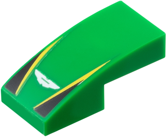Slope, Curved 2 x 1 x 2/3 with White Aston Martin Logo, Yellow Stripes, Black Triangles Pattern