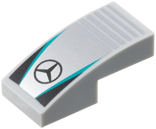 Slope, Curved 2 x 1 x 2/3 with Mercedes-Benz Logo on Silver Background with Notches, Dark Turquoise Stripes, Black Triangles Pattern