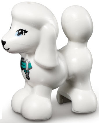 Dog, Friends Style, Poodle with Bright Light Blue Eyes with Eyelashes, Black Nose, Dark Turquoise Collar with Silver Buckle and Tag Pattern