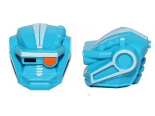 Minifigure, Head, Modified Galaxy Squad Robot with Black Rectangle Right Eye, Orange Round Left Eye and White Lines Pattern