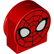 Duplo, Brick 1 x 2 x 2 Round Top, Cut Away Sides with Spider-Man Face Pattern