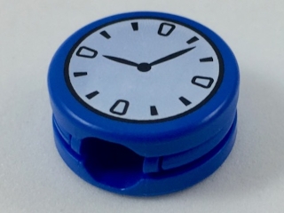 Minifigure, Head, Modified Cookie Shape with White Clock and Black Hands Pattern (Clock King)