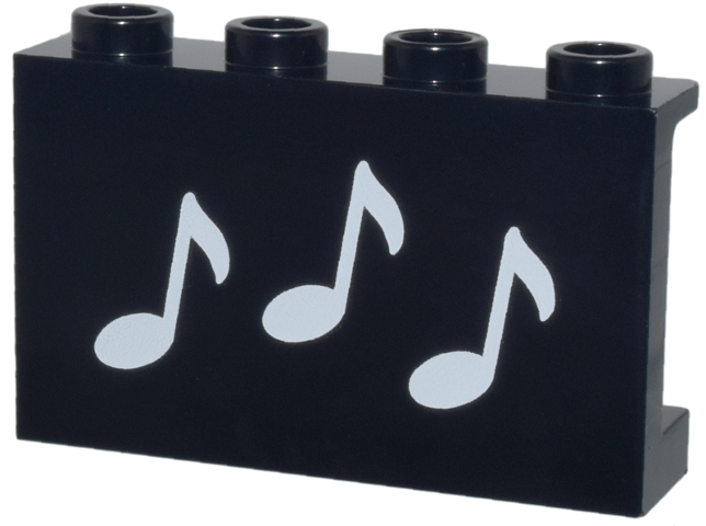 Panel 1 x 4 x 2 with Side Supports - Hollow Studs with 3 White Music Notes Pattern