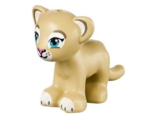 Cat, Friends Style, Large, Baby Cub (Lioness) with Medium Azure Eyes, Dark Pink Nose and White Inner Ears, Eye Patches, Muzzle and Paws Pattern