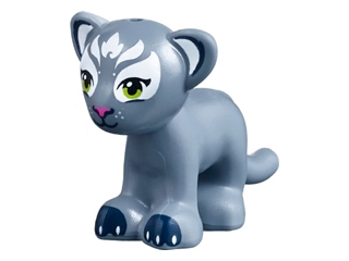 Cat, Friends Style, Large, Baby Cub (Panther) with Lime Eyes, Dark Pink Nose, Dark Blue Paws and White Inner Ears, Eye Patches and Face Decorations Pattern (Elves Enki)