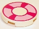 Tile, Round 2 x 2 with Bottom Stud Holder with Magenta and Bright Pink Life Preserver, Curved Bands Pattern