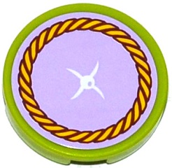 Tile, Round 2 x 2 with Bottom Stud Holder with Lavender Cushion with White Button and Yellow Rope Trim Pattern (Sticker) - Set 41094