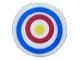 Tile, Round 2 x 2 with Bottom Stud Holder with Blue and Red Circles and Yellow Dot Archery Target Pattern