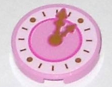 Tile, Round 2 x 2 with Bottom Stud Holder with Dark Pink Clock with Gold Hands Pattern