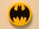 Tile, Round 2 x 2 with Bottom Stud Holder with Black Bat Batman Logo Pattern