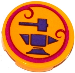 Tile, Round 2 x 2 with Bottom Stud Holder with Hammer and Anvil in Magenta Circle Pattern (Sticker) - Set 41176