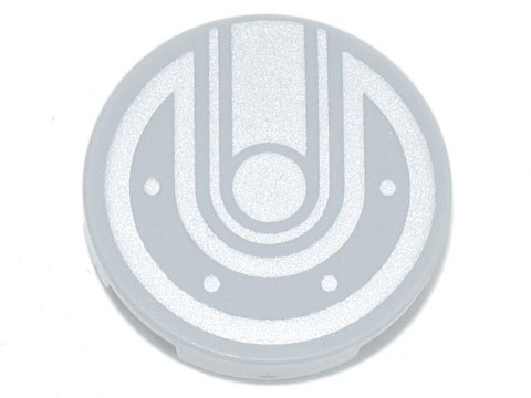 Tile, Round 2 x 2 with Bottom Stud Holder with Silver Lines, Bolts/Dots Pattern