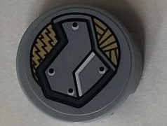 Tile, Round 2 x 2 with Bottom Stud Holder with Light Bluish Gray Panel on Gold Decorative Background Pattern Model Left Side (Sticker) - Set 76099