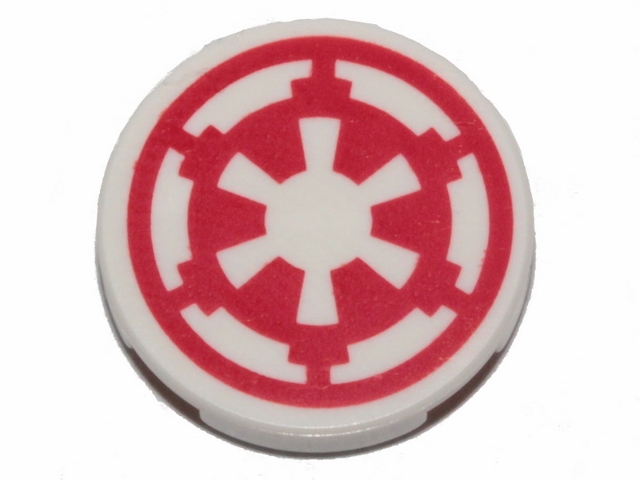 Tile, Round 2 x 2 with Bottom Stud Holder with Red SW Imperial Logo Pattern