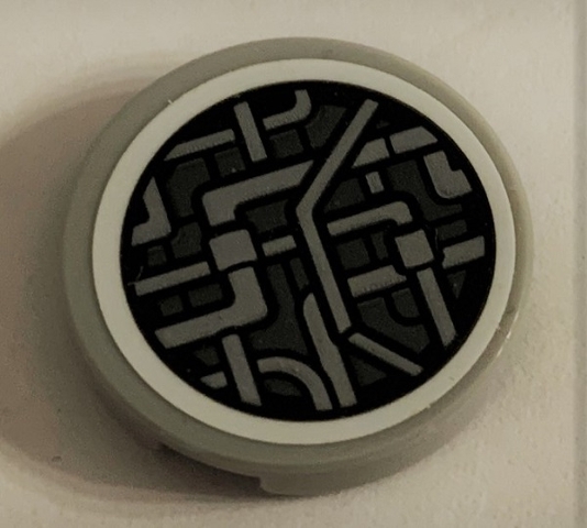 Tile, Round 2 x 2 with Bottom Stud Holder with SW Millennium Falcon Light Bluish Gray Pipes Pattern (Sticker) - Set 75212