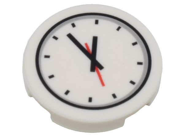 Tile, Round 2 x 2 with Bottom Stud Holder with Clock and Red and Black Hands Pattern