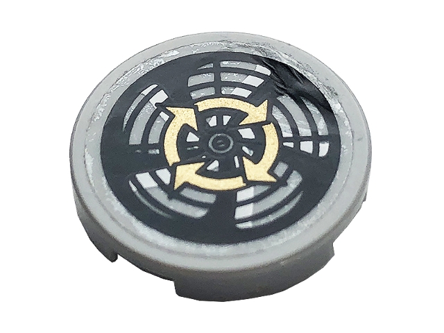 Tile, Round 2 x 2 with Bottom Stud Holder with Four Gold Arrows and Ventilation Fan Pattern (Sticker) - Set 60141