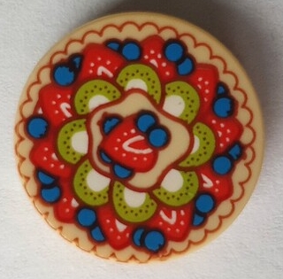 Tile, Round 2 x 2 with Bottom Stud Holder with Strawberry, Kiwi, and Blueberry Fruit Pie / Pavlova Pattern (BAM)
