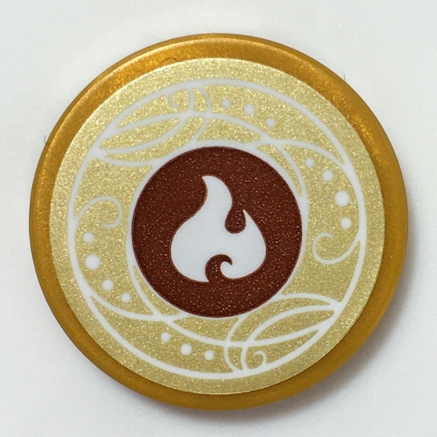 Tile, Round 2 x 2 with Bottom Stud Holder with Elves Fire Power Icon with Ornate Border Pattern (Sticker) - Set 41196