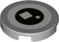 Tile, Round 2 x 2 with Bottom Stud Holder with White Eye and Black Pupil with 2 White Squares Pattern (BrickHeadz Minion Eye)