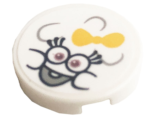 Tile, Round 2 x 2 with Bottom Stud Holder with Face and Bright Light Orange Bow Pattern (Sticker) - Set 41256