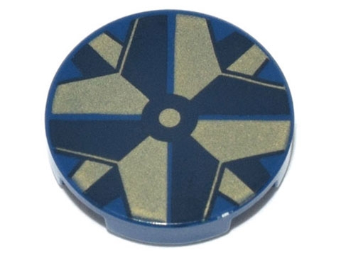 Tile, Round 2 x 2 with Bottom Stud Holder with Gold and Black Compass Center Pattern