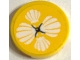Tile, Round 2 x 2 with Bottom Stud Holder with Cushion with White Shells and Black Button on Yellow Background Pattern (Sticker) - Set 41380