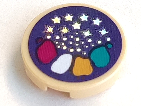Tile, Round 2 x 2 with Bottom Stud Holder with Paint Patches, Silver Stars and Dots Pattern (Sticker) - Set 41687