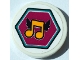 Tile, Round 2 x 2 with Bottom Stud Holder with Bright Light Orange Music Notes with Black Wings in Magenta Hexagon Pattern (Sticker) - Sets 41368 / 41449