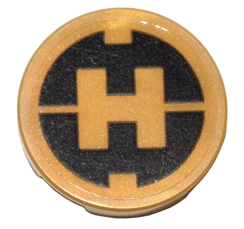 Tile, Round 2 x 2 with Bottom Stud Holder with Black Hero Factory Logo 'H' on Transparent Background Pattern (Sticker) - Set 80036