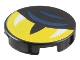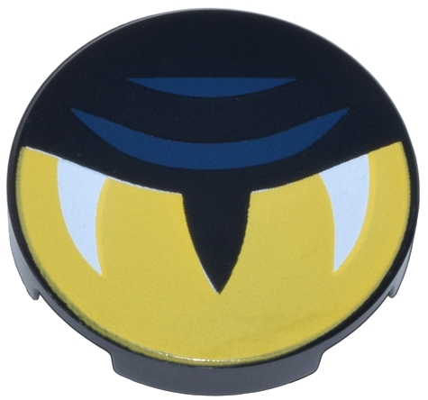 Tile, Round 2 x 2 with Bottom Stud Holder with Yellow Eye Half Closed, Slit Pupil, White Glints, and Dark Blue Eyelid Lines Pattern