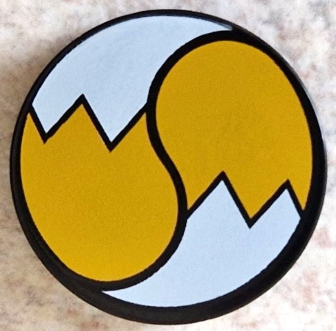 Tile, Round 2 x 2 with Bottom Stud Holder with 2 Bright Light Orange and White Fox Tails with Zigzag Lines Pattern