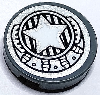 Tile, Round 2 x 2 with Bottom Stud Holder with Silver Engine, Black Grille and White Star in Circle Pattern (Sticker) - Set 70429