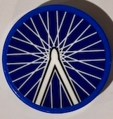 Tile, Round 2 x 2 with Bottom Stud Holder with White London Eye Ferris Wheel Spokes Pattern (Sticker) - Set 854012