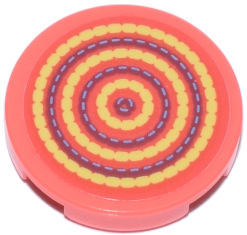 Tile, Round 2 x 2 with Bottom Stud Holder with Seat Cushion with Bright Light Yellow, Medium Blue and Medium Lavender Concentric Circles Pattern (Sticker) - Set 42647