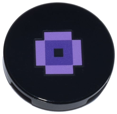 Tile, Round 2 x 2 with Bottom Stud Holder with Pixelated Medium Lavender Rectangles and Dark Purple Square Pattern (Minecraft Music Disc / Record)