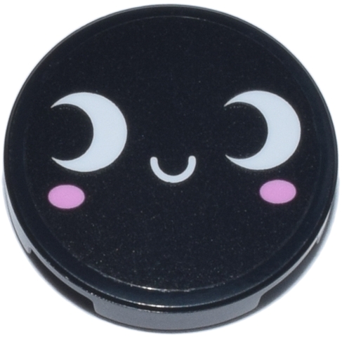 Tile, Round 2 x 2 with Bottom Stud Holder with Face with White Eyes Looking Right and Bright Pink Cheeks Pattern Model Left Side (Sticker) - Set 42653