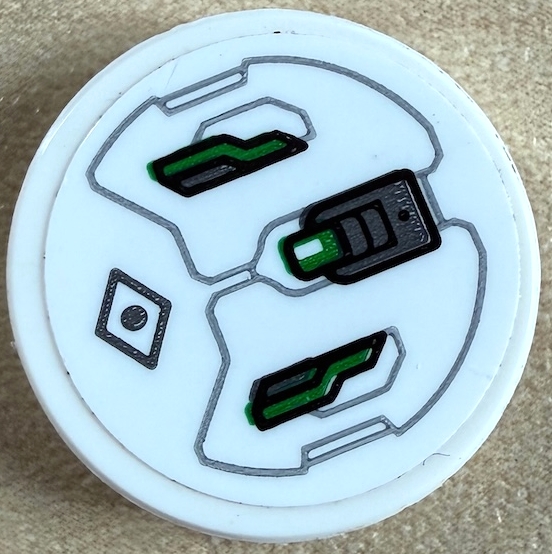 Tile, Round 2 x 2 with Bottom Stud Holder with Armor Plates Outlines, Dot in Diamond and Bright Green Lights Pattern (Sticker) - Set 76174