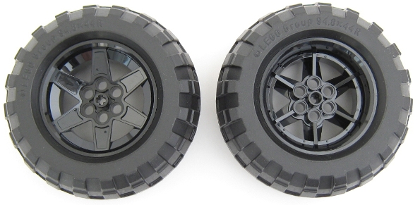 Wheel 56mm D. x 34mm Technic Racing Medium, 6 Pin Holes with Black Tire 94.8 x 44 R Balloon (15038 / 54120)