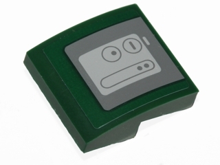 Slope, Curved 2 x 2 x 2/3 with Gray Circles, Dots and Square with Rounded Edges on Dark Green Background Pattern (Sticker) - Set 75090