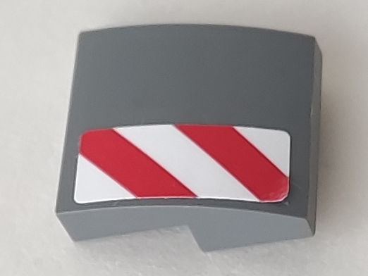 Slope, Curved 2 x 2 x 2/3 with Red and White Danger Stripes Pattern Model Left Side (Sticker) - Set 60073