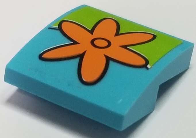 Slope, Curved 2 x 2 x 2/3 with Orange Flower on Lime Background Pattern (Sticker) - Set 75903
