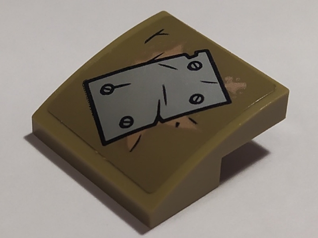 Slope, Curved 2 x 2 x 2/3 with Diagonal Silver Plate and 4 Rivets Pattern (Sticker) - Set 76054