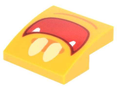 Slope, Curved 2 x 2 x 2/3 with Bright Light Yellow Eyes and Red Open Mouth Smile with White Fangs Pattern (Super Mario Gold Ghost Face)