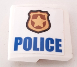 Slope, Curved 2 x 2 x 2/3 with Gold Badge and Blue 'POLICE' Pattern Model Right Side (Sticker) - Set 60140