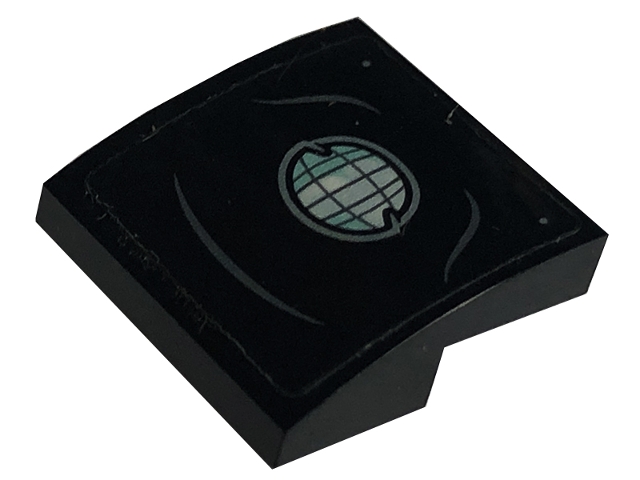 Slope, Curved 2 x 2 x 2/3 with Headlight with Silver Outline and Dark Bluish Gray Curved Lines Pattern (Sticker) - Set 76179