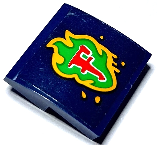 Slope, Curved 2 x 2 x 2/3 with Red and White Capital Letter F on Bright Green and Bright Light Orange Flames Pattern (Sticker) - Set 70429